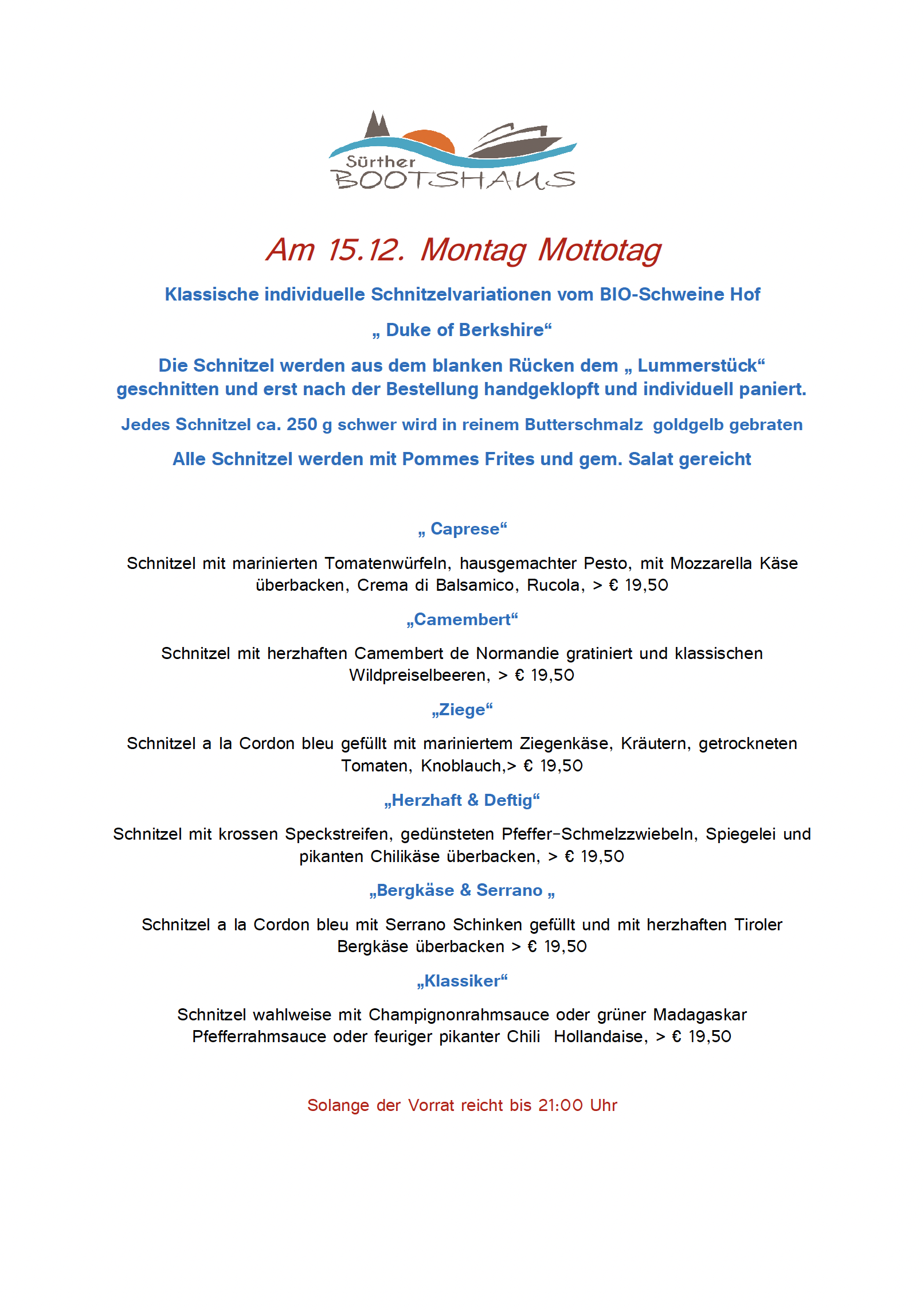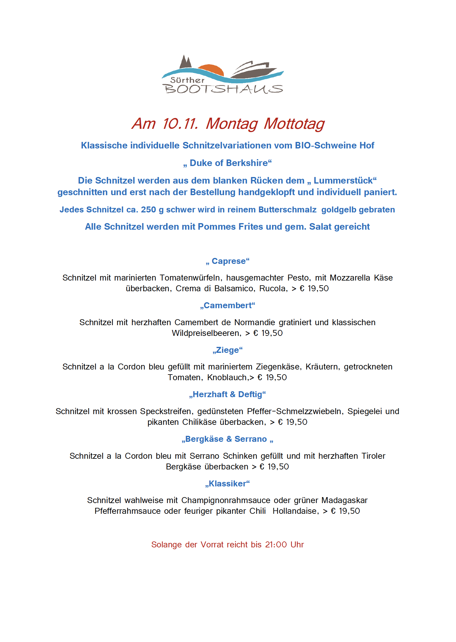 Küche 16.30 bis 21.00 Uhr
