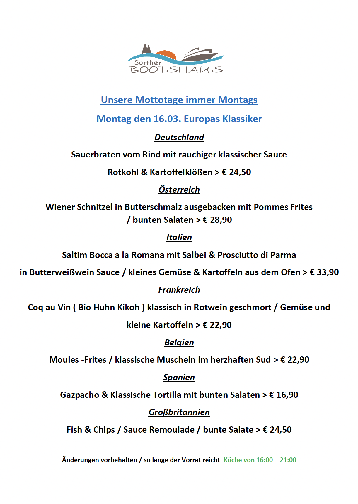 Küche 16.00 bis 21.00 Uhr